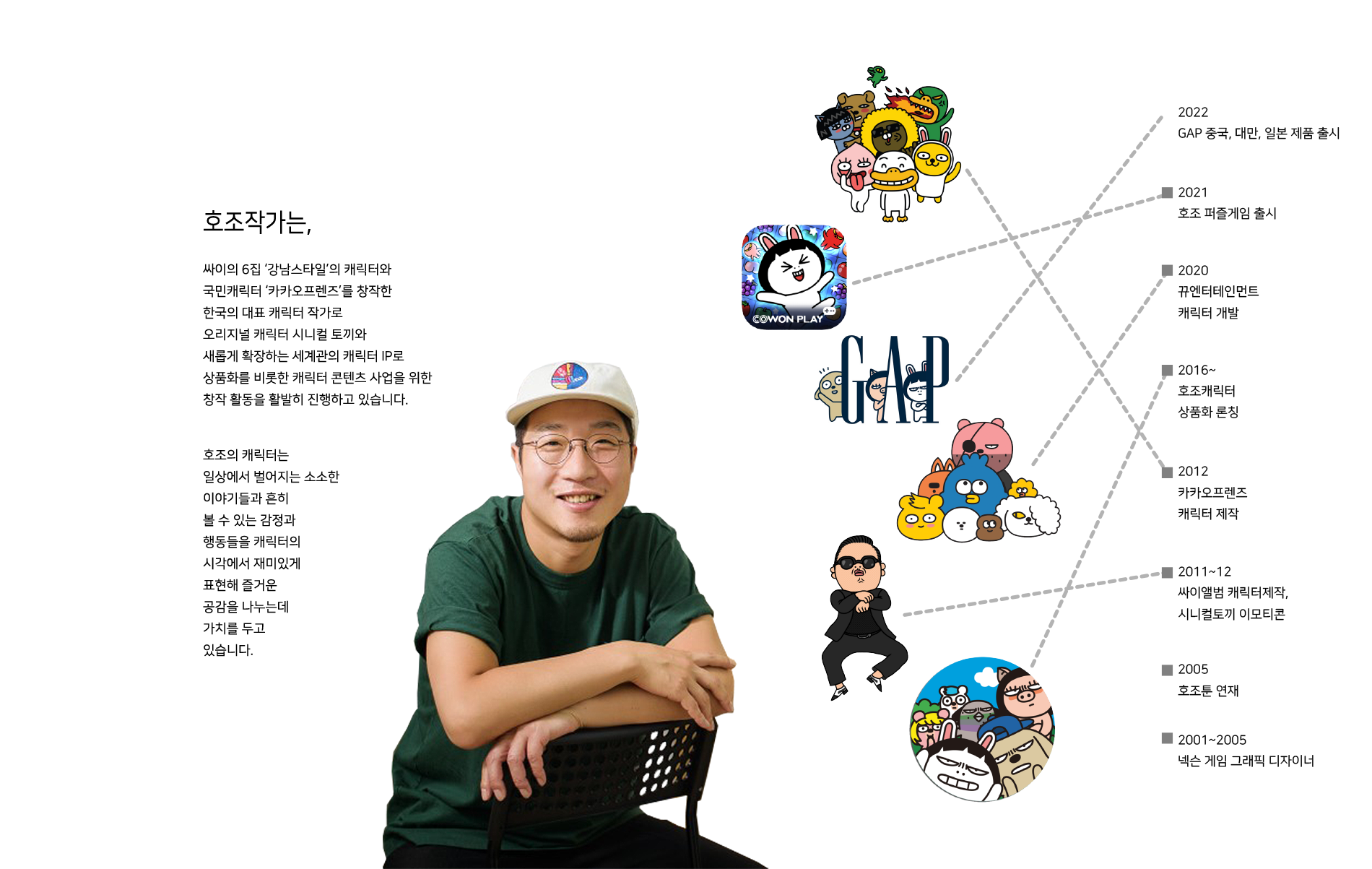 HOZOWA는 카카오프랜즈 디자이너로 알려진 캐릭터 작가, HOZO와 캐릭터 IP사업 전문가가 공동으로 설립한 캐릭터 회사입니다.